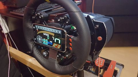 Nekem ez kicsit fura így a kormányon. Van ez a kormányra felül középre tehető műanyag, azzal is az volt a gondom hogy túl közel van. Base-re érdemes tenni. T300 esetén egy kisebb telefont simán oda lehet ragasztani, nekem sikerült (igaz, most Oculus miatt már levettem). V2.5höz meg már láttam több helyen felszerelhető telefontartót a bázisra.