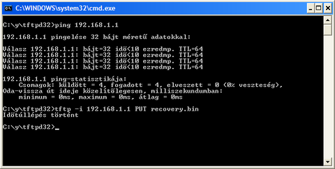 Aztán egy "stripped" gyári firmware-t recovery.bin-re átnevezve a winxp-s tftp-vel megpróbáltam feltölteni.