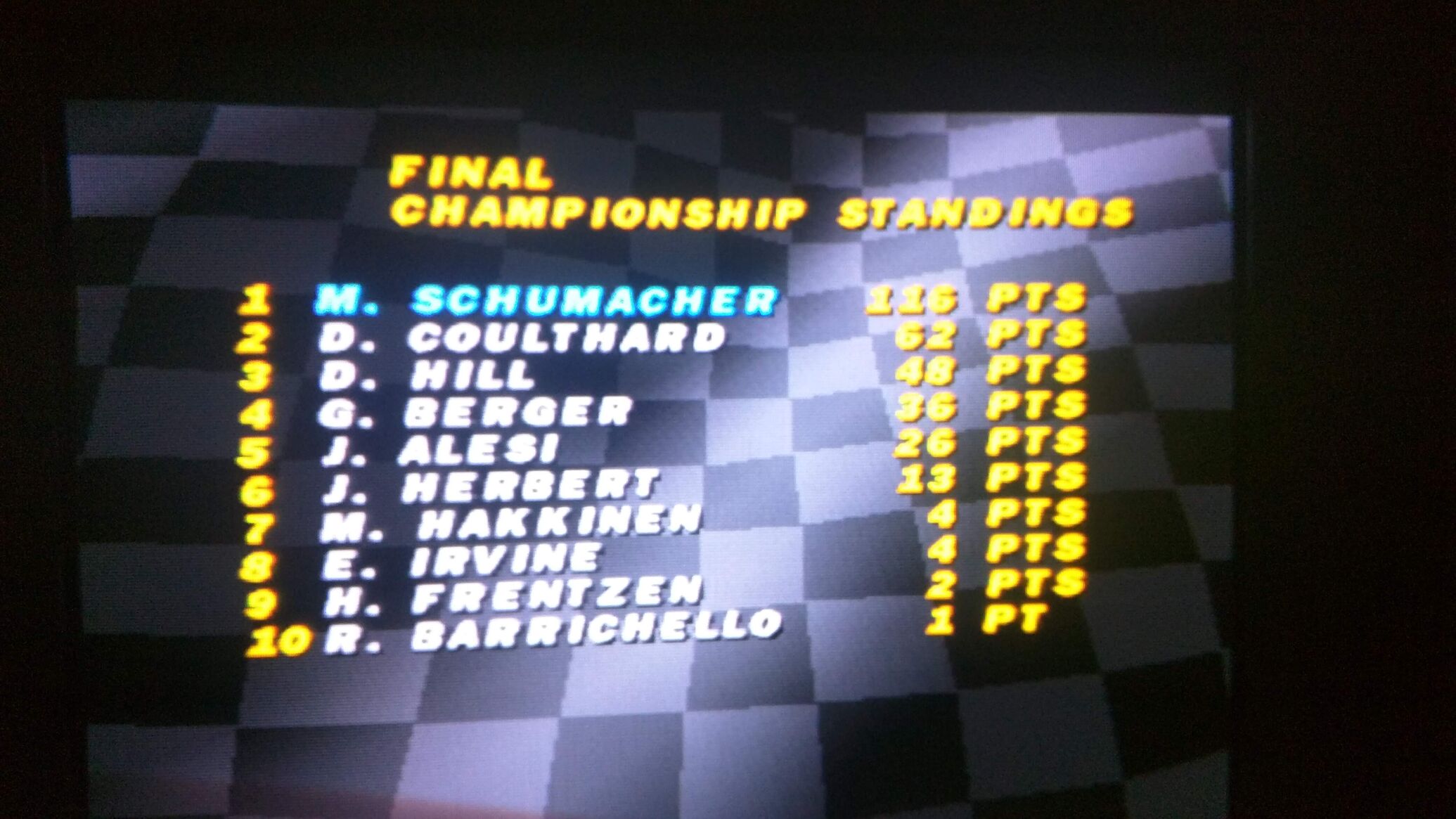 Ma kipróbáltam a PS1-es F1-et,találtam benne egy elég kellemes kameranézetet és röpke 1 órára be is szippantott a játék.
