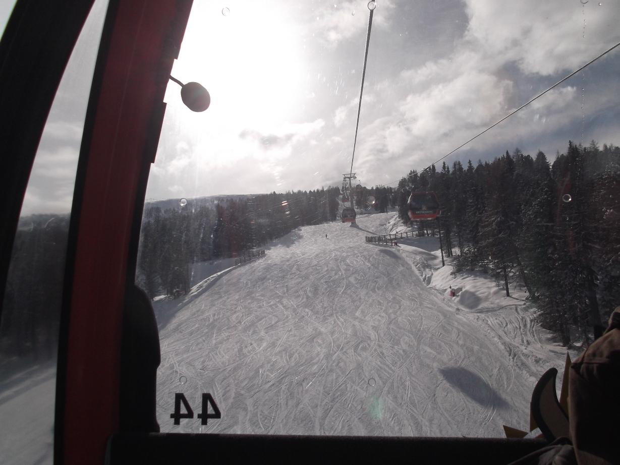A csúcsról az 52-52b-52c-55-ös útvonalon jöttünk le, hát sohat többet, ugyanis eszméletlen buckás volt, és már a porhót is letolták a snowboard-osok. (nem csak ők de azért ők erősebben dózerolják a pályákat, voltak szép számmal) Volt hogy az egyik nap mégegyszer arra felé járton, inkább a kabionos felé vettem az irányt és szépen lejöttem vele, pedig én aztán úgy vagyok vele hogy menjünk inkább még egyet ne üljünk le. Azon a hegyen az 51-es pálya nagyon kellemes volt bár a vége szintén kicsit lejegesedett, ott kicsit koncentráltabban kellett. A hegy másik oldalán lévő pályák (39,40) egyáltalán nem tetszettek, itt egy csúszás és mentünk vissza, mindenki egyetértett.