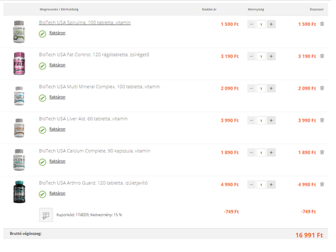 Az Edigital csúnyán át akar verni. Minden raktáron lévő Biotech USA étrenkiegészítő termékre 15% kedvezmény van azonban náluk a matek nem erősség, ezért nem sikerült levonni a megfelelő kedvezményt. A 15%-ot a shaker-re is írják és csak a kuponosok közül válogattam.