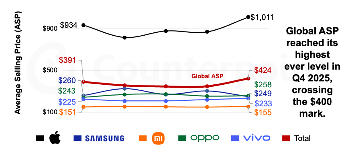 Google szempontjából ez a 11. hely is figyelemre méltó, mert a Pixel-eknek relatív magas az eladási áruk és szűk a termék palettája a többi androidos gyártóhoz képest... A lenti grafikonból pedig az látszik, hogy a samsung úgy második darabszám tekintetében, hogy az átlagos eladási ár (ASP) csak harmada az Apple-énak. Ezen az ábrán nincs rajta a Google, de gyanítom, hogy a Global ASP fölött van egy kicsivel...