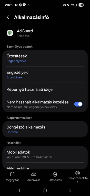 Ja, hogy azt szeretted volna kifejezni, hogy csak az Adguard app-nak van megadva az engedély.... A korábbi hsz-ed félreérthető volt, hogy az "Adgurad oldaláról".