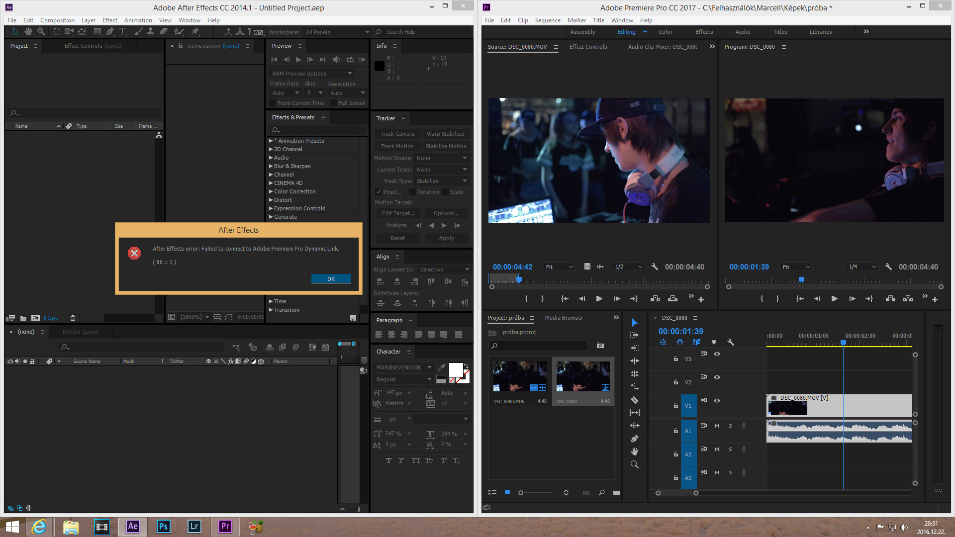 Ma meg akarom nyitni és nem sikerül. Fehér ablak nyílik meg imprting felirattal. A Premier legalább kiír valami hibát, mert hogy az Ae projekt egy másik Premiere projektben volt használva.