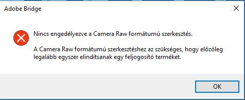 Adobe Bridge CC 6.3.0.177 x64 verzió nem hajlandó a raw formátumú és jpeg képeimet se megnyitni a Camera Raw alkalmazásban.