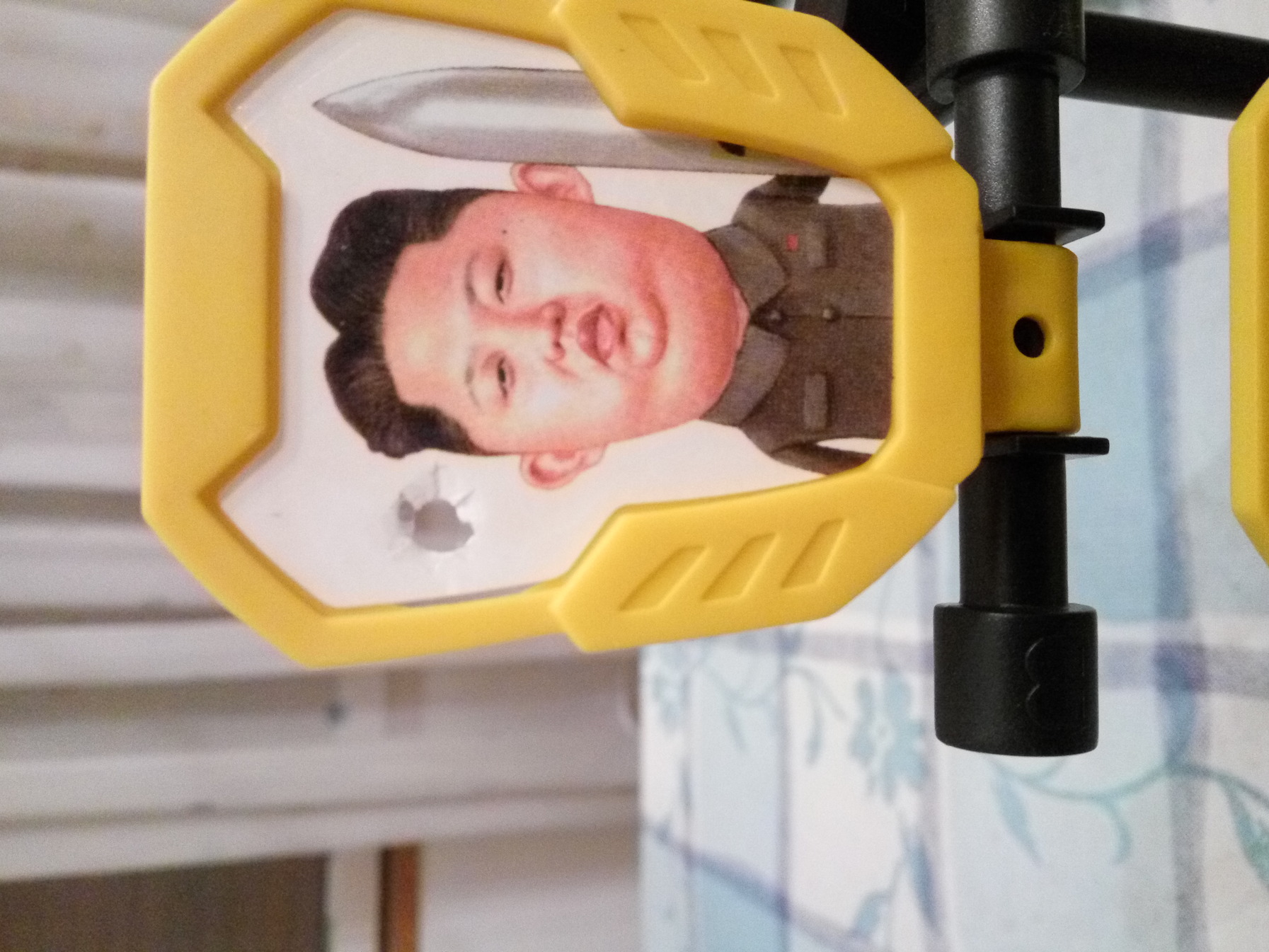 Itt van pár kép a kilyuggatott céltábláról. 5 méter volt a táv, nem nagyon célozgattam, csak szórtam full-autón.