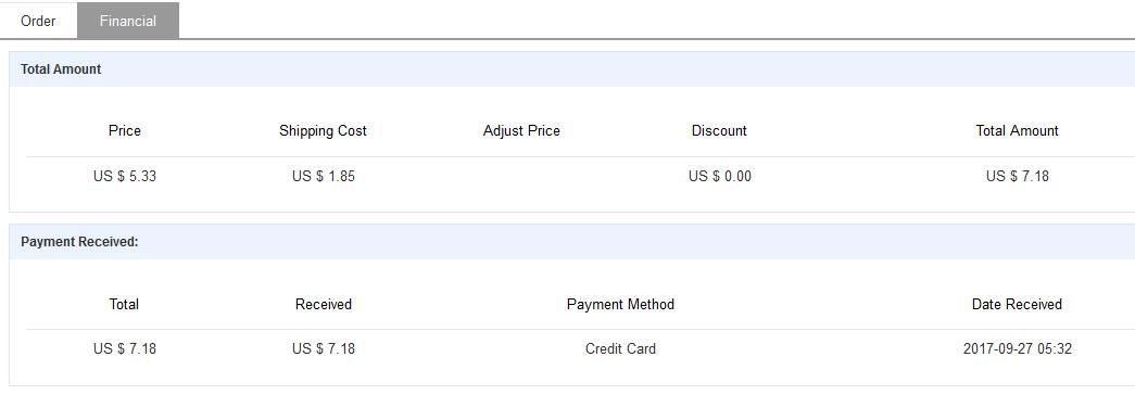 A vásárlásodnál a View Detail és Financial fül