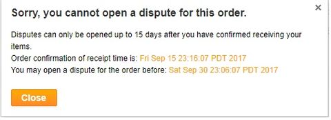 Valami nem jó, nem szoktuk megvárni hogy lejárjon, meert akkor ugrik az igazi dispute, úgy két hete volt egy próba, 5 nappal előtte már lehetett nyitni, én az utolsó két napot javasoltam eddig, de semmikép utána, mert a legjobb esetben csak a 15 nap "megérkezési" idő utáni lehetőség van vagy semmi, mivel lejárt az idő.