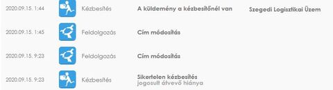 A vicc az hogy megnéztem egyet amit már átvettem augusztus 18-nál van az a szöveg hogy megérkezett nálad és 2020.09.08-án kaptam meg. Az hogy Mo-n szédelgett 21 napig én nem hiszem el. -