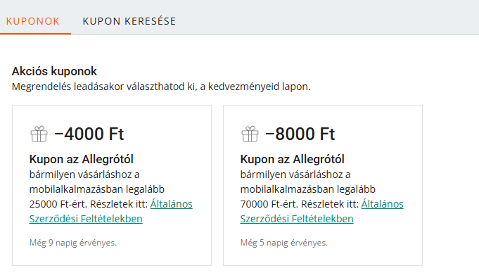 Érdemes tudni, hogy az aktuális promóciókat önállóan is megtalálhatja a Kuponok fül alatt. Az elérhető kedvezményeket és kihívásokat közvetlenül ezen a linken érheti el: https://allegro.hu/kuponok