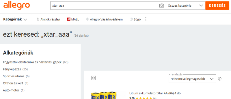 Mióta retardált az allegro keresője? Fogja azt átírja orbitális baromságra a keresőkifejezést. Beírom hogy "xtar aaa", aztán arra keres hogy "star apa".