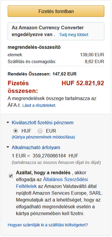 3. Euroban fizess! A te bankod biztosan jobban valt mint az Amazon, de ha esetleg van euro alapu szamlad az a legjobb. -