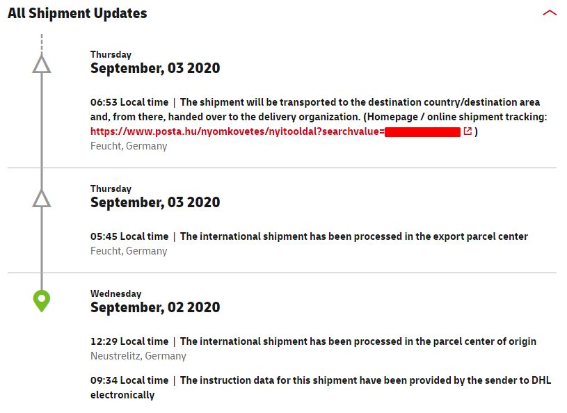 Az amazon oldalán és a DHL, illetve posta oldalán más a tracking (csatoltam a képeket).
