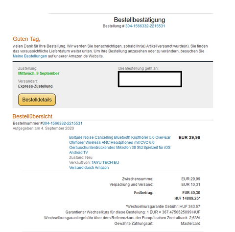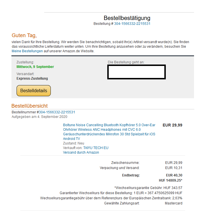 Német amazonról rendeltem, megadtam a revolut kártya számomat, de nem veszi le a pénzt. Mi okozhatja?