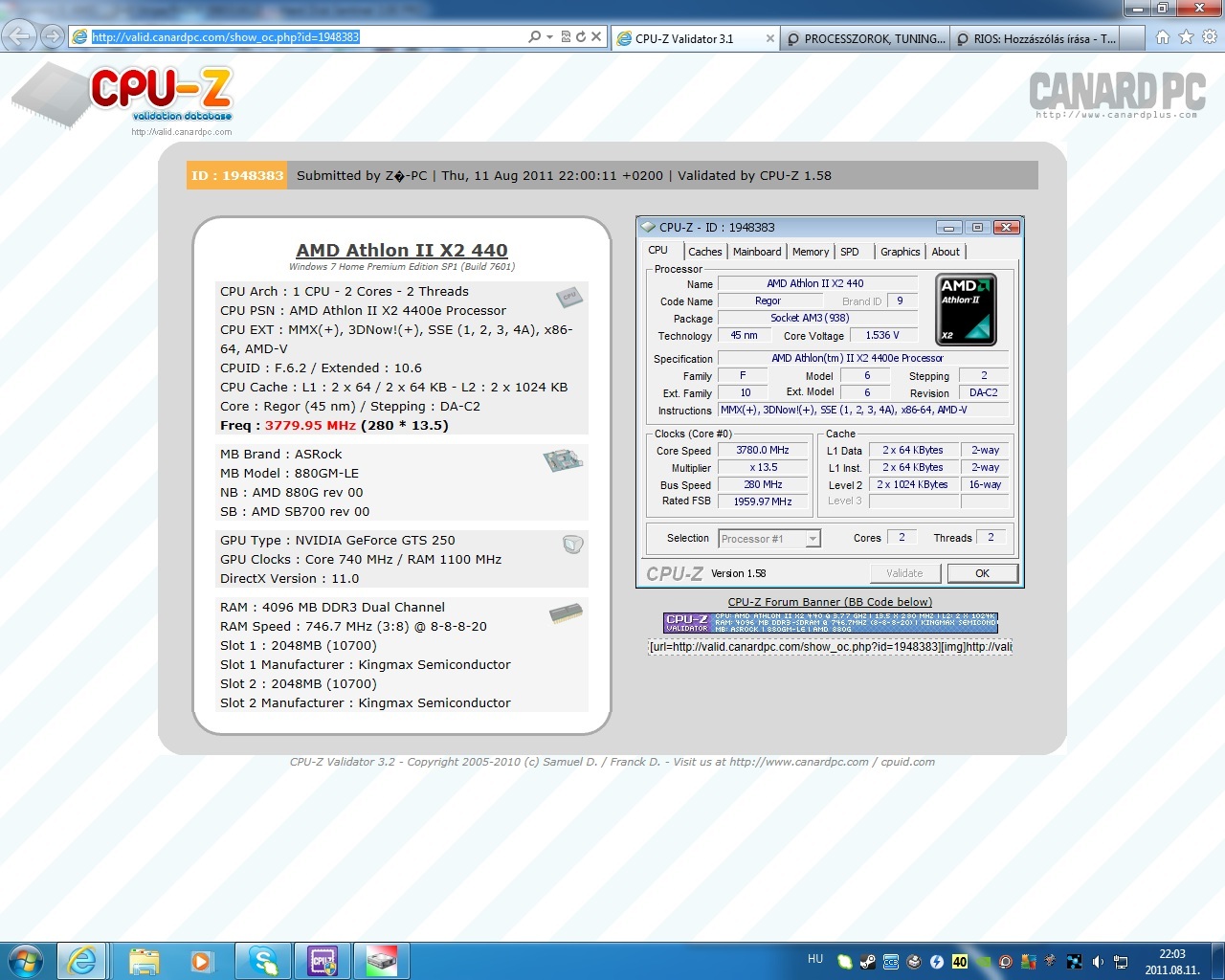 Az asszony gépébe vettem AMD Phenom II X2 = X4 AMD Phenom II X2 555 3.20GHz AM3 . b55 procit, hozzá GIGABYTE GA-880GM-D2H lapot és 2x2gb elpida kitt (4gb 1333mhz cl9) ramokat.