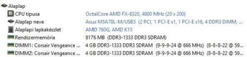 Az első benyomás a lapról a 8320-al,hogy jó. Sőt. Az előző ASRock 890GX PRO3 R2.0-hoz képest a processzor kevesebb feszültséggel is be éri,és nem throttlingol APM-el sem 4GHz-n.Felette még nem próbáltam,de ami késik nem múlik. 4Ghz-n CPU Queen-ben bő 1500 pontal többet kap,és ugyan ez a helyzet az új 3Dmark-al is. Amit buktam az a sata3 port,de ezt az SSD mellet nem nagyon érzem meg. Már csak egy új vinyót kell vennem. A jövő héten még tovább tesztelem,hogy mit tud.