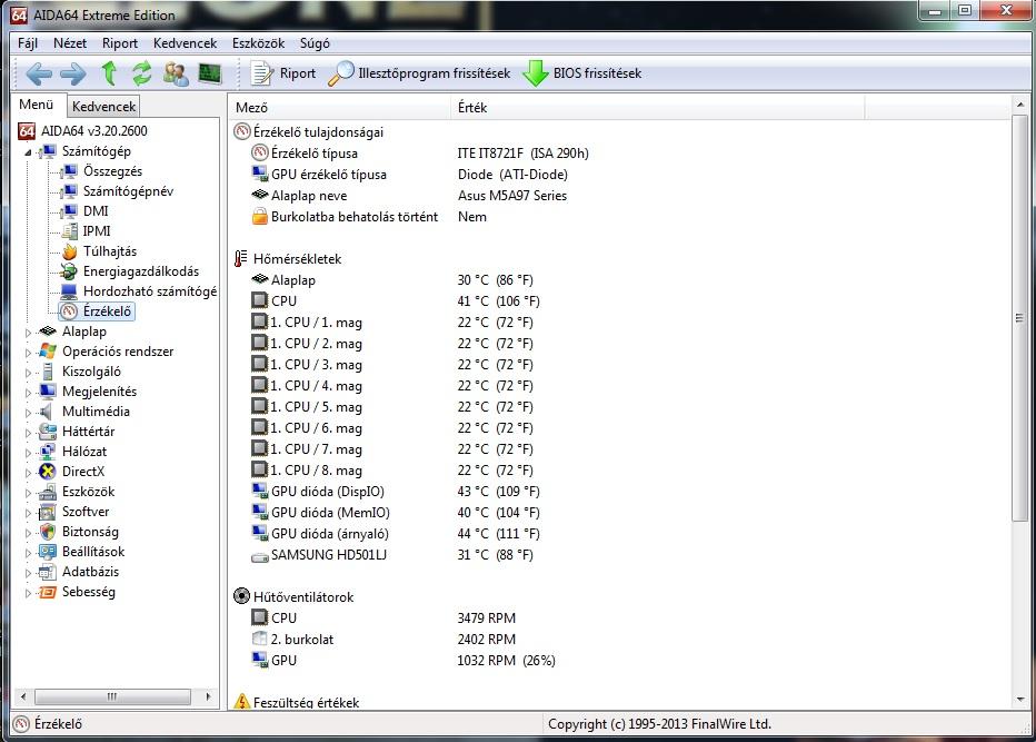 Érdekes dolgot tapasztalok újrapaszta óta. Bár most is felmegy a CPU hőmérséklet üresjáratban is 45C körülre, de nincs hangja, nem pörög fel. Csak 50C körül kezd felpörögni, bár a fordulatszám így is elég magas, 3500 körüli üresben.