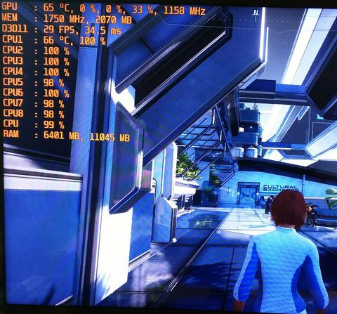 4.3GHz. Nem mindenhol ilyen, maga a játék nincs rendesen optimalizálva. Mondjuk izé, már a főmenüben is 100%-on pörög a proci.