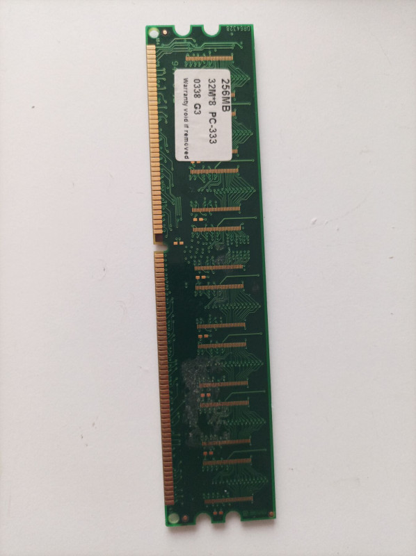Akkor én szerencsés voltam, mert nekem 2,5 évig hibátlanul ment a 640MB RAM. Egy 333-as Samsung 512-es és egy Nanya 128MB-os 266-os, ami valamilyen okból simán ment 333-on (lévén akkoriban 11×133 helyett 12,5×166-on futott a gépem).