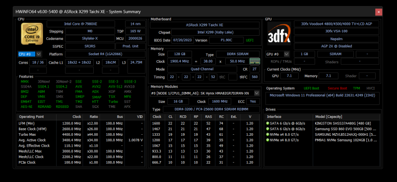 Képet ad, azaz lehetne cyberpunkozni is vele hogy a nagy kártya dolgozik ez meg csak kitolja a kimenetén. WDDM driver nem volt sajnos egyik 3dfx kártyához. Rendes harvers gyorsítással csak V2-est lehet megoldani Win11-el (XP/SRV2003 64bites driverrel), V1-est csak akkor ha vissza van véve a proci.