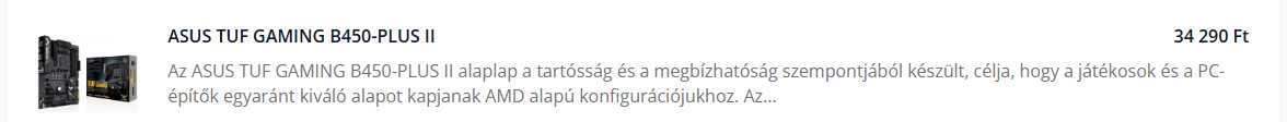 Tesómnak építek Kari ajándék gépet, hasonló lappal, mint ami nekem van a Zen2- ben. ASUS TUF GAMING B450-PLUS II, kifutó lap, de már ennek is emelkedett az ára. Rendelési ár ez volt, ma meg is érkezett. Félmodern, de a Phenom-II gépénél fényévekkel jobb lesz.