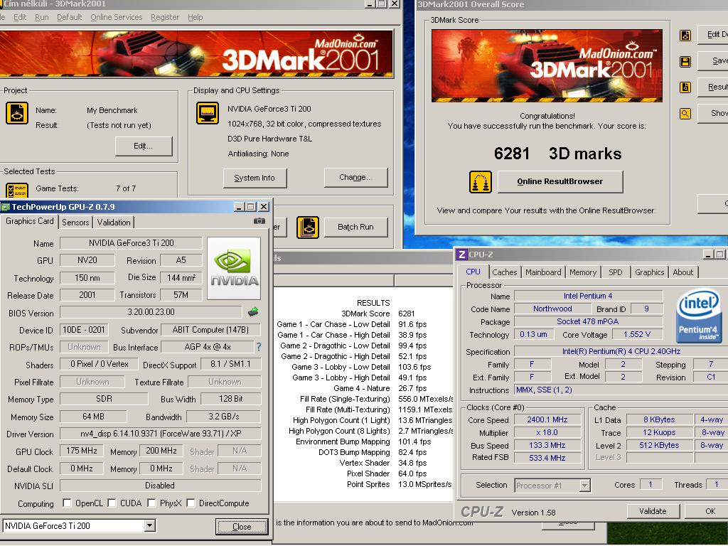 Ezt már nem igazán tuningolom, meg akarom őrizni.A legérdekesebb felfedezés az volt, hogy míg az ATI kártyák (pl. a 9500) nem indulnak el, ha nem kötöd rá a plusz tápot, addig ez elindul, csak nem tolja fel az órajeleket és jelez a meghajtó programban, hogy nincs extra delej, tök jó.