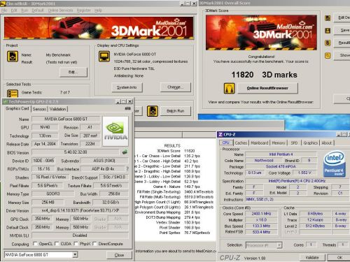 Gyors próba, műkszik a 6800GT + a 2x512 Corsair. A SIS- es, kissé gyenge lapban futtatva :