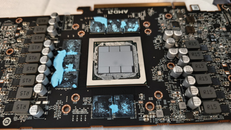 Ezt akkor szokták használni, ha nem akarnak foglalkozni a gap-pel, azaz a thermal pad által áthídalandó távolságokkal. Szerintem nagyon spúr megoldás egy ilyen drága VGA-n ezt használni. Szétszedéskor is veszélyes, mert "friss" kikeményedett állapotban Le tudja tépni a chip-et is...