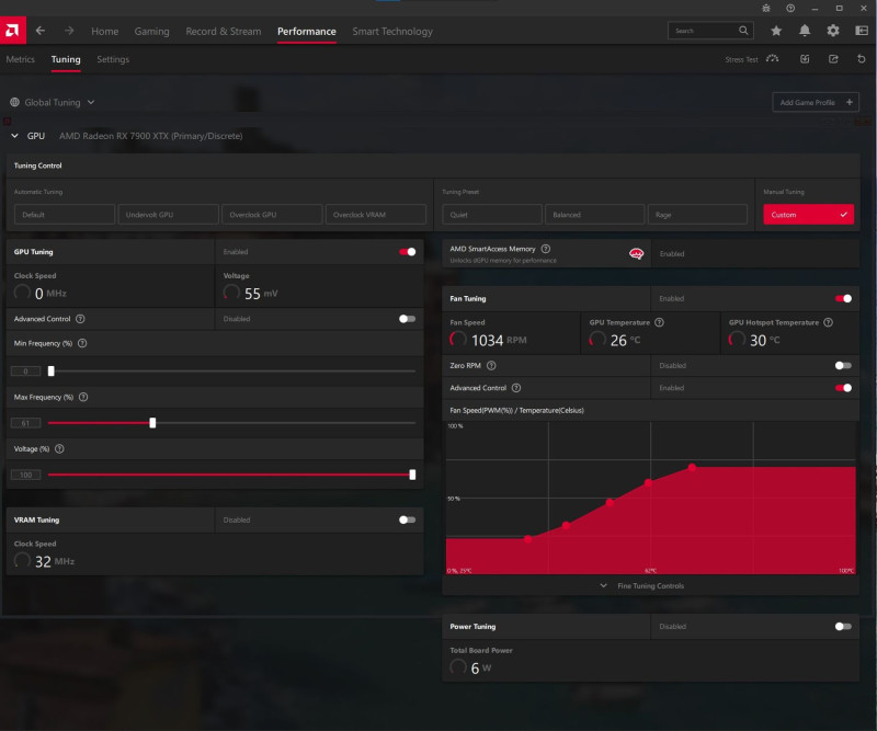 Most levettem a feszültségből 10mV-ot és 2650Mhz re lehúztam a GPU-t. Így 1 óra játék ment vele.