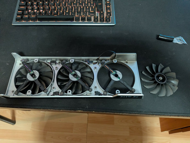 XFX 7900XTX hangos (csapágyas) ventilátor javitása, 3x8x4 csapágyak cserélyével elcsöndesültek