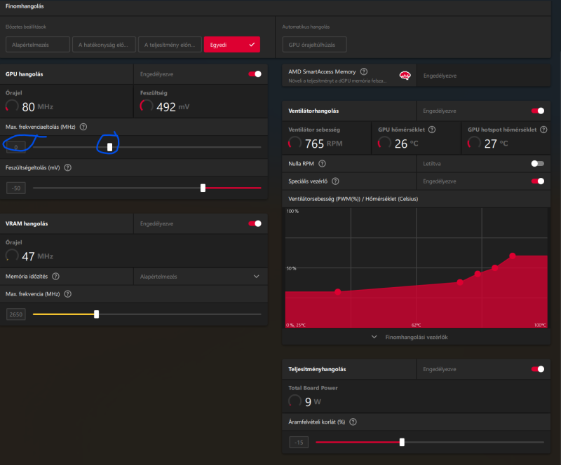 Érdekes mód egyébként pont nem a ventiprofillal akad össze. Ebben az esetben a Gigabyte (majdnem) minden beállítása felülírja az Adrenalinét, kivéve a teljesítményre vonatkozóak. Minden újraindításnál szépen kinullázták egymást.