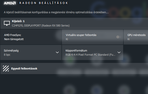 Adott egy Samsung C24FG70FQU monitor amihez most vettem egy RX 580-at, kifejezetten a FreeSync miatt. Na most pont az ami nem működik rajta sajnos, Azt írja a driveren belül, hogy nem támogatott és a monitor beállításaiban sem lehet engedélyezni. Leszedtem a monitorhoz tartozó drivert ami hatására már nem PnP képernyőként látta eszközkezelőben, hanem már felismerte rendesen. HDMI-n és Display Porton is próbáltam, ott sem engedi. Legújabb driver van fent, úgy sem engedi. Esetleg gariztassam a monitort, vagy mi lehet rá a megoldás?