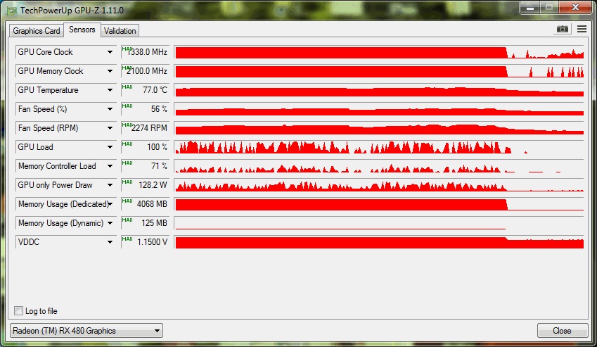 325W az lehet (ha így simán szorozzuk, de soknak tűnik, inkább a fele a valós, kéne egy másik ilyen eredmény ott mit dob.) Kitalálható, hogy a 2,6Ax11,91V az kevés a 32W-jával. Egyebkent meg kene nezni az avg.-t meg a max-ot, ugye ezt a GPU-Z-ben egy valley 30 perc után szépen látni, csak kettőt kell kattintani a senzor értékére. Hőfok valóságát is dobja, de jobb kimaxolni. Láthatóan jó is, a TDP nem szól bele, tartja az 1120-at végig.
