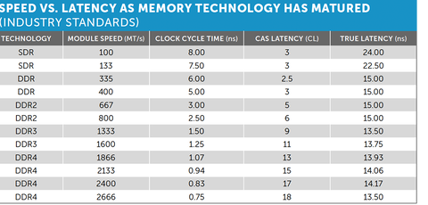 Ebből eredően jelenleg a valós késleletési abszolút idő majdnem azonos a DDR3 és DDR4 között.
