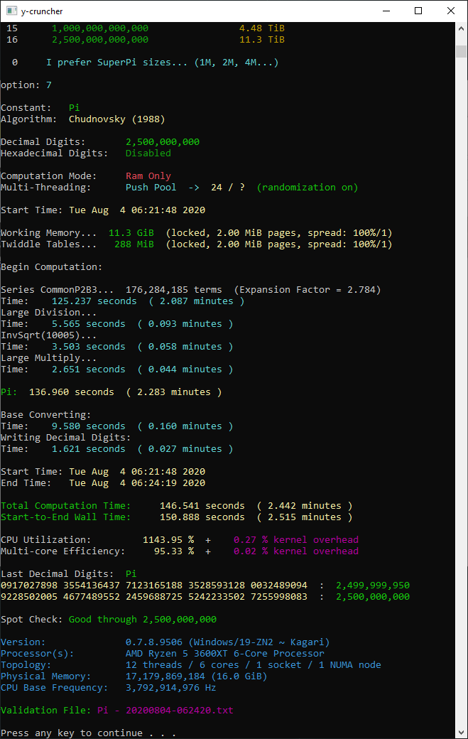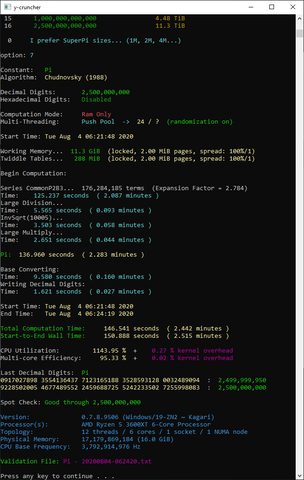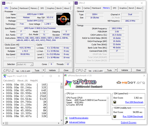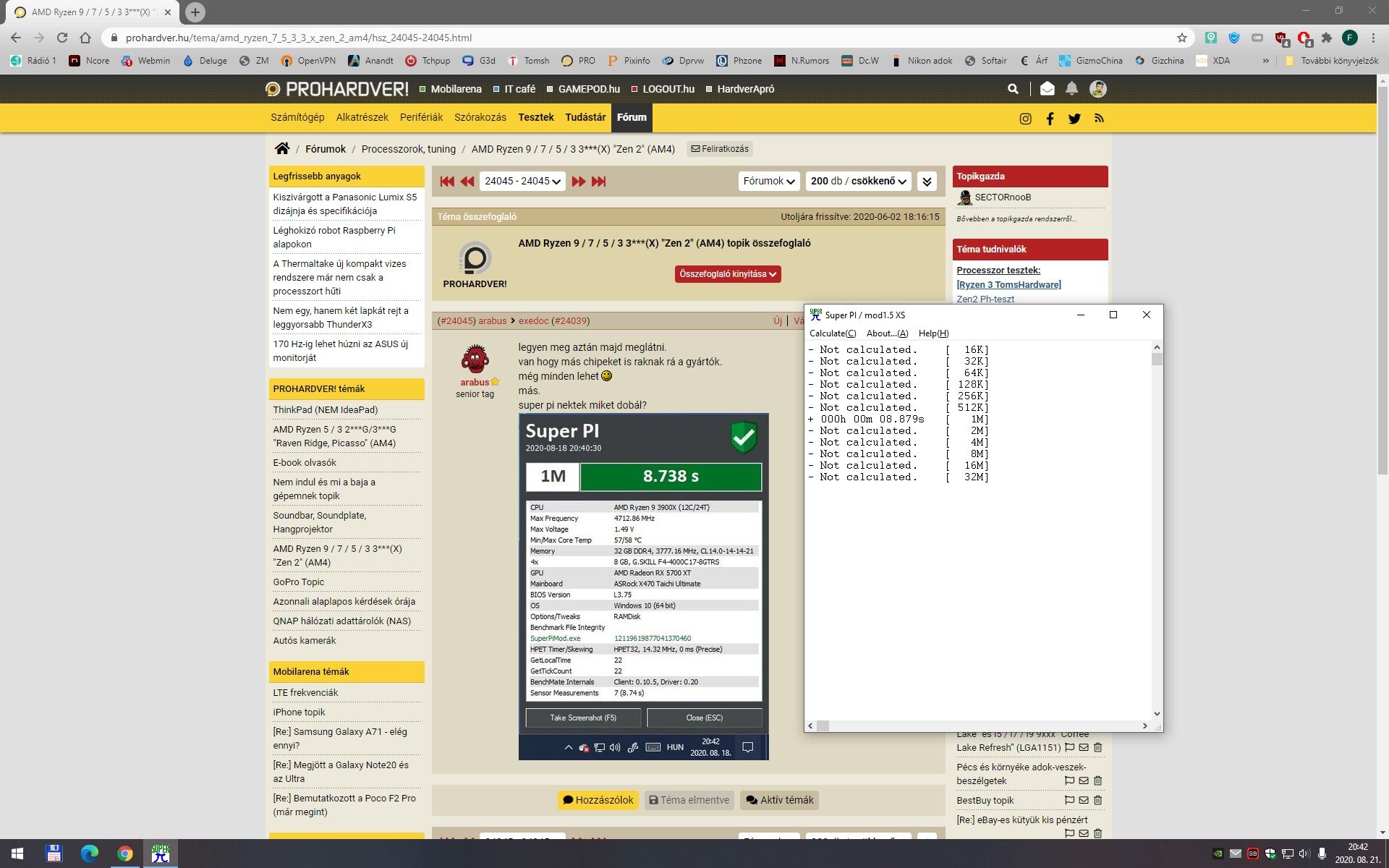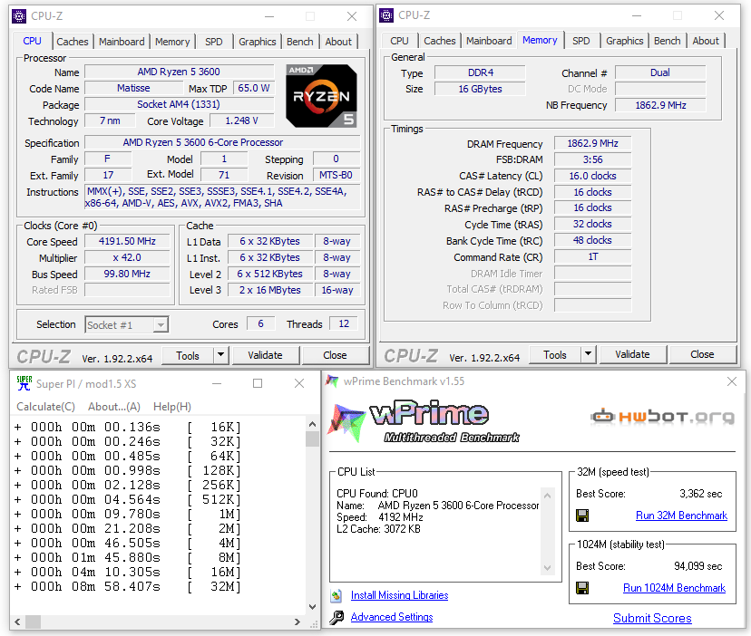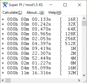 Super PI 16K-tól 32M-ig mindegyik: