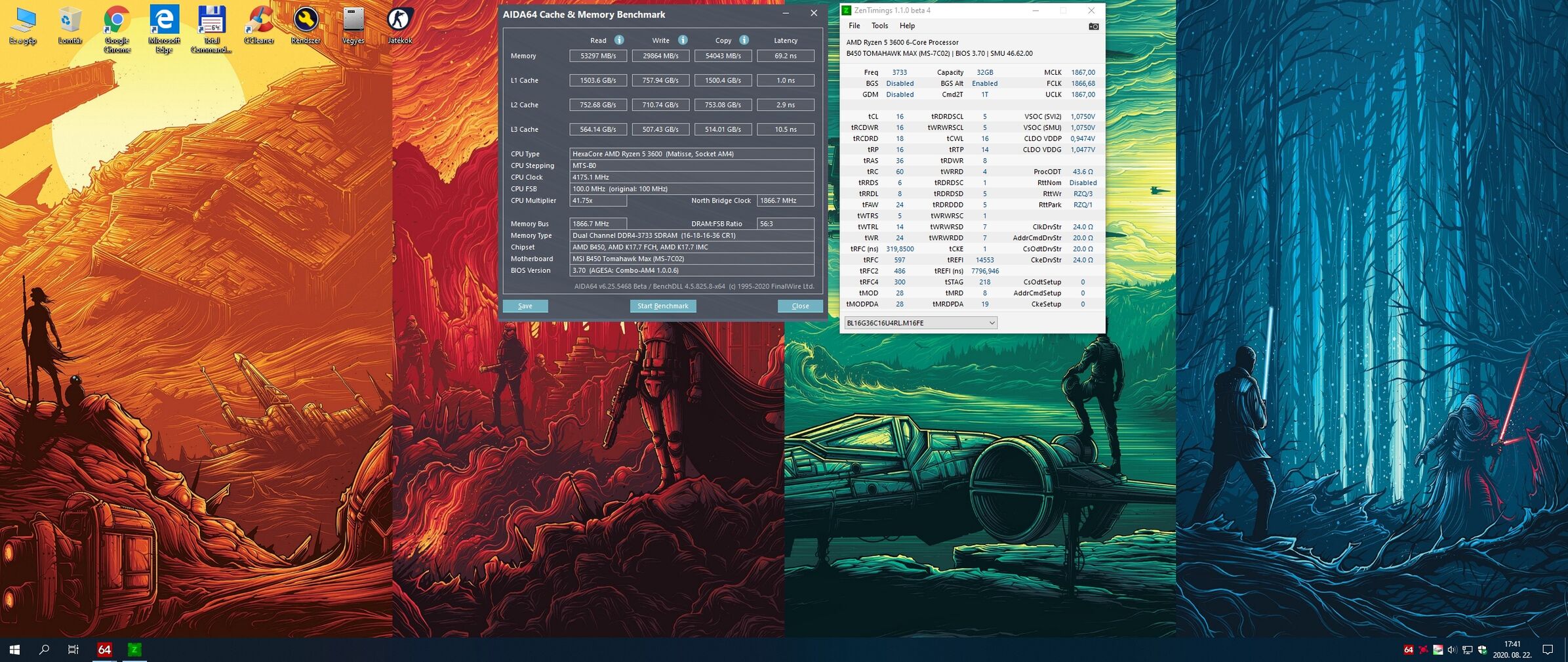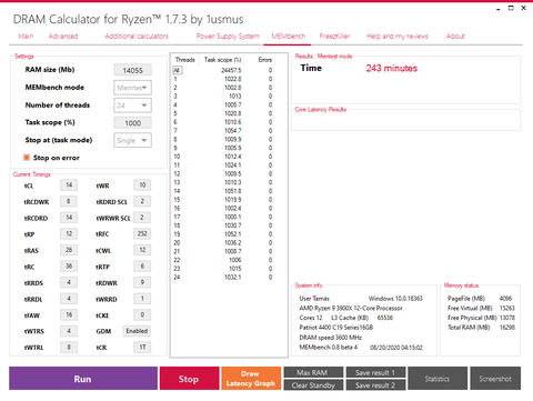 3700X alapon, 32GB Micron E-die @3666 MHz CL16