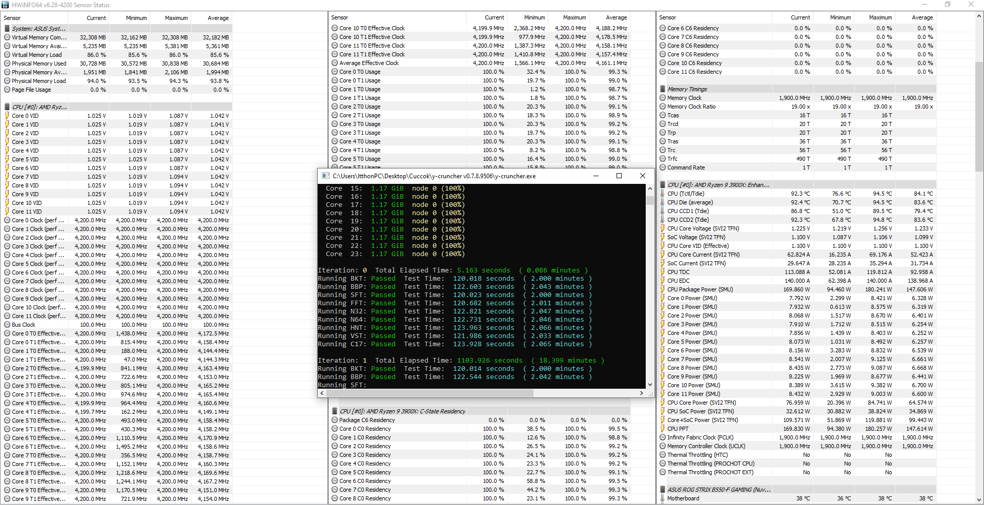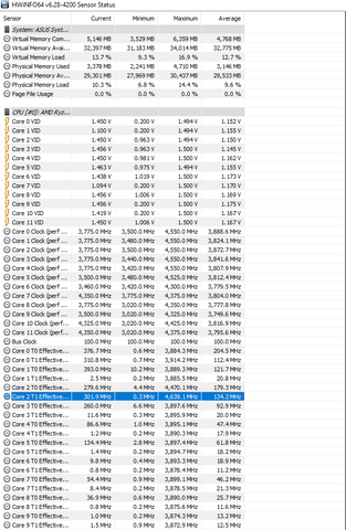 CPU CORE Voltage: Min: 1,150 V max: 1,156 VCPU CCD1 (Tdie) MAX temperature: 85.3
