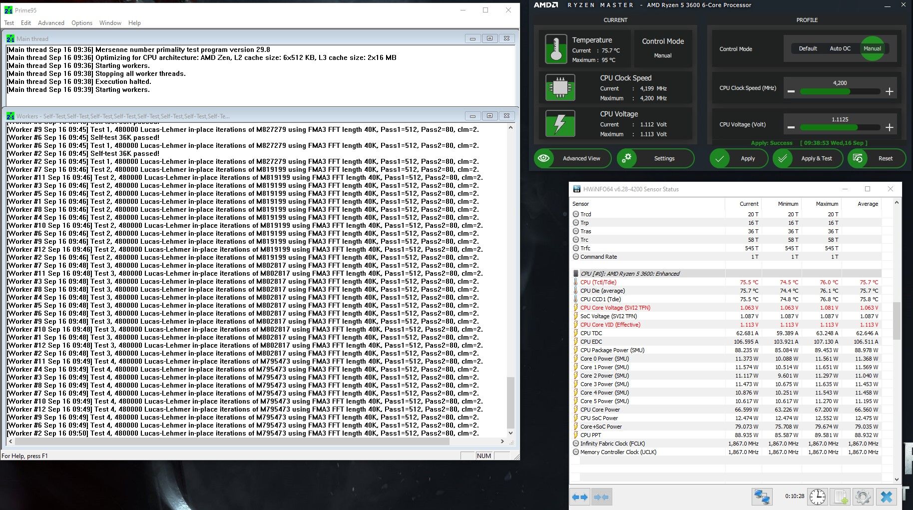 Prime 95 Small FFT elvileg. 25174-es hsz 1.299V volt átlagban (max 1.331V).