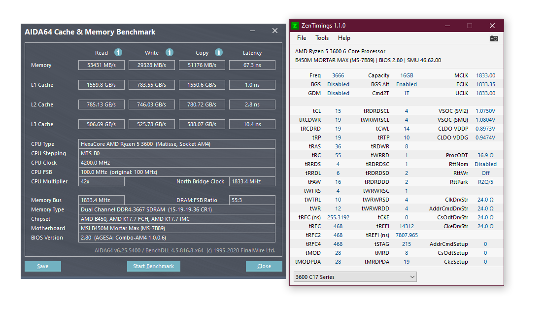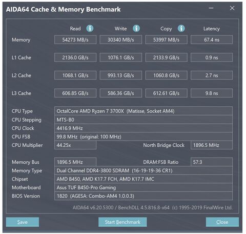 Mindent pontosan úgy állítottam be a BIOS-ban, ahogy az előző alaplapnál.Mértem a B450-el és ezzel is jó párszor AIDA-ban a 3733 CL16 memória értékeket, kíváncsi voltam, hogy lesz-e valami eltérés a két lap között ugyanazokkal a beállításokkal.