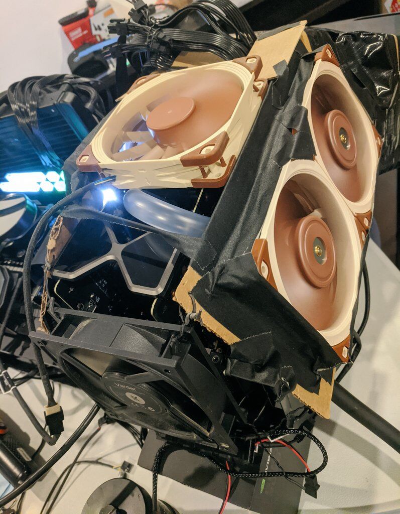 Hűtöm a procit, a vga-t és az alaplapi chipsetet, mindezt 2db 360x45mm-es radiátorokkal és 9db Arctic P12 ventikkel.