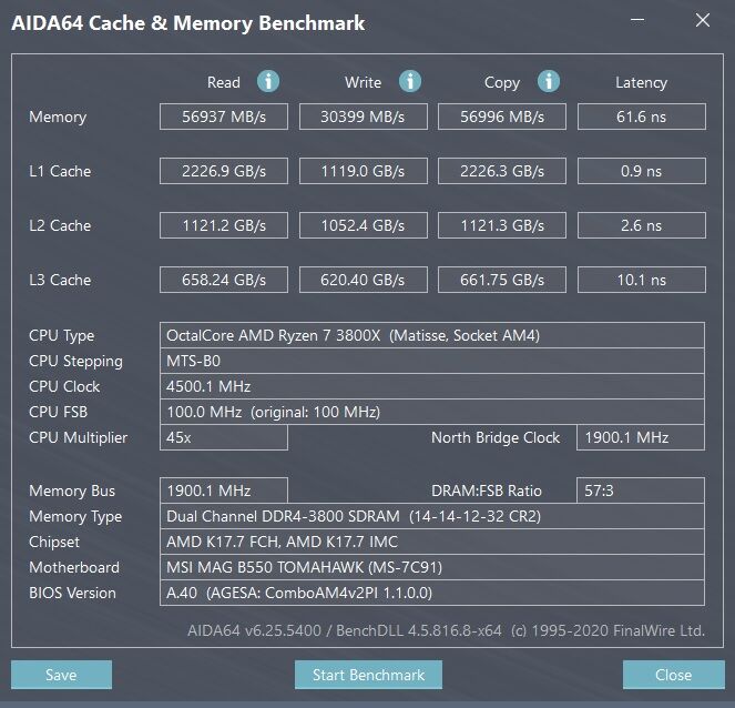 Nahát... felraktam a SoC-ot 1.2V-ra, XMP profil be, DDR 3800 MHz be és FCLK 1900. Csont nélkül megy stabil 1:1-es felállásban mindenféle mókázás nélkül. Korábban mindenhogy fagyott, ha feljebb merészkedtem. DDR4-3600-CL17-es modulokkal CL18-ban, 1T-vel.