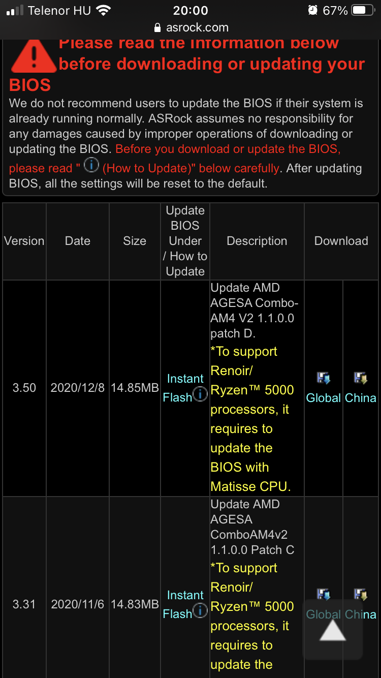 Dátum szerint dec 31-én rakták fel a bétát. Persze én csak a saját lapom néztem, a többit nem. Viszont én ezzel a lappal meg vagyok elégedve, “olcsó” és teszi a dolgát, nálam az m.2 wifi miatt volt ez választva, mert csak ebben volt ilyen slot ilyen áron (az asus b450-e wifi antennát így tudom használni).