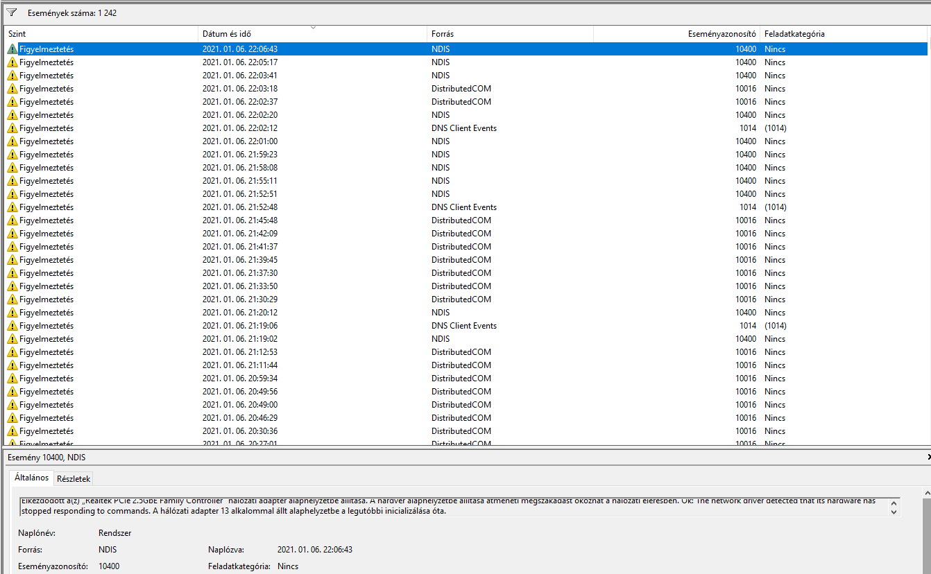 Pl.: "'The network interface "Realtek Gaming 2.5GbE Family Controller" has begun resetting. There will be a momentary disruption in network connectivity while the hardware resets. Reason: The network driver detected that its hardware has stopped responding to commands. This network interface has reset XX time(s) since it was last initialized.'"Nekem is teljesen hibátlan, amíg nem kap UDP-n erősebb terhelést. [link]