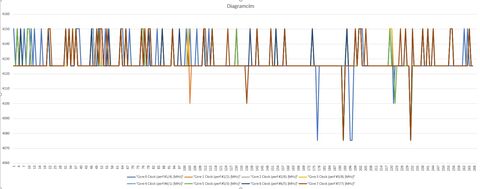 Elméleti példa: VRM out 1,45V, átlagos mag megy 4,2GHz-en kell neki 1,3V hozzá, fogyasztása 13W ebből következően 10A áramot vesz fel, ez esetben az LDO 1,5W-ot disszipál, legjobb mag megy 4,25GHz 1,45V mellett és eszik 15W-ot, spóroltunk pár százalék fogyasztást? Lenne ennek értelme? Ráadásul a méréseim alapján néhány mag terhelése esetén mindenki beáll már egy alacsonyabb órajelre, tehát az órajel különbségek tényleg csak az abszolút egyszálú terheléskor jelentkeznek, egy játékban ahol próbálnak több szálasítani már semmi nem jelentkezik ebből az "előnyből" nem úgy, mint egy CB egyszálú teszt alatt.Fix beállított feszültség mellett biztos nem megy az LDO, mert terhelésre betartandó a PB limiteket nagyon alacsony órajelre leszabályoz, ebből azt a következtetést vonom le, hogy megkapják a magok a beállított feszültséget.