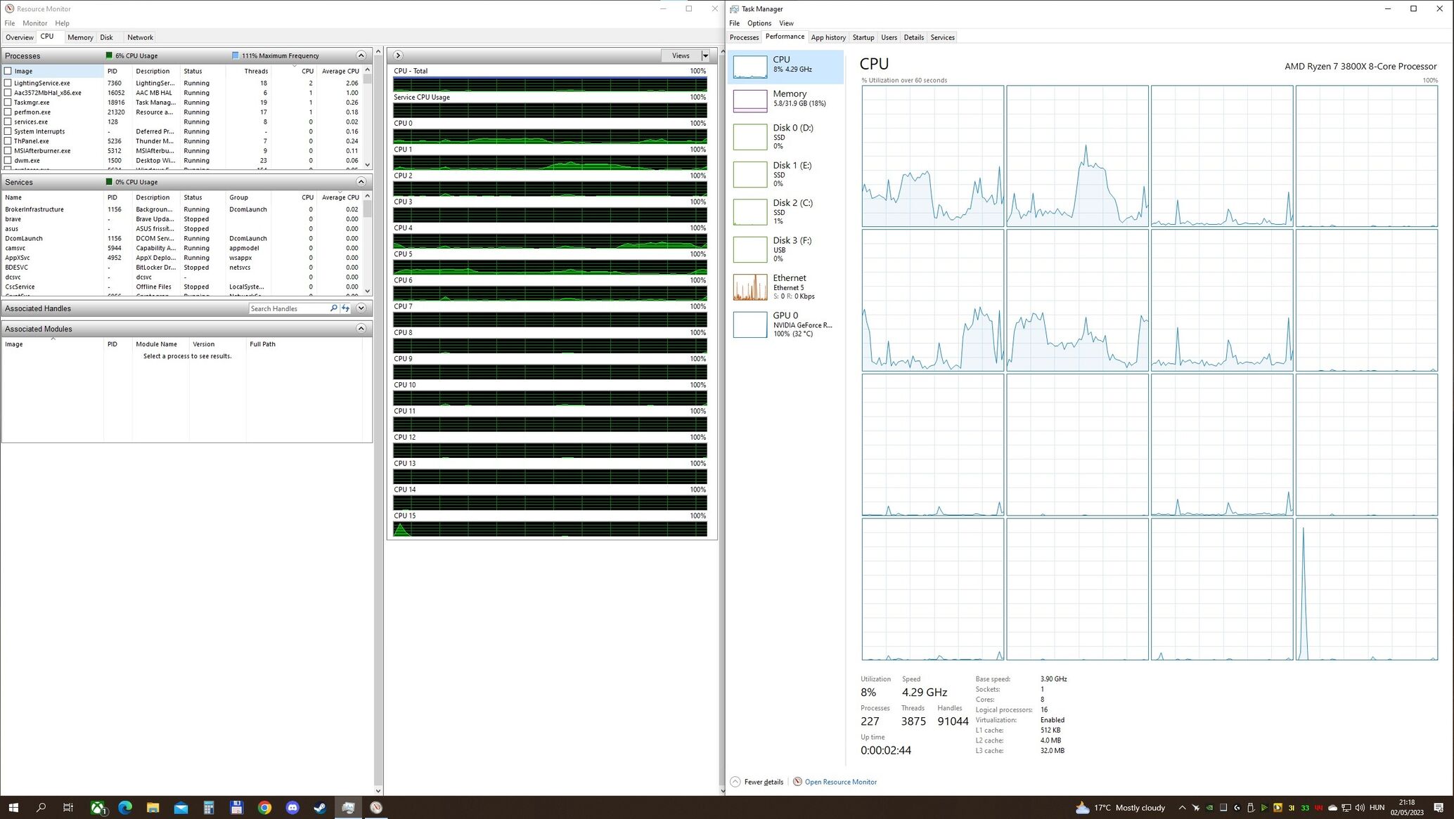 Állandóan maximum órajelen ketyeg a proci.Érdekes, hogy a Resource Monitoron afolyamatlista tetején azt írja, hogy 111% maximum Frequency, de gondolom azért, mert az alap órajel 3.9 lenne, de 4.3 környékén ketyeg épp.