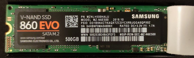 A Samsung 860 EVO SATA M.2-es SSD-t egy másik régebbi PC-mből heréltem ki, ott jól működött. Kiherélés előtt egy Windows USB boot media-val formáztam, töröltem a partícióit meg mindent.
