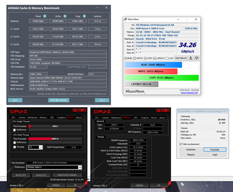4 modul ugye. Új (béta) biossal sikerült relatíve rendes működésre bírni a Ballistix AT modulokat, 3600cl16-19-15-30-al, viszont eléggé visszaesnek az olvasás-írás-másolás értékek.