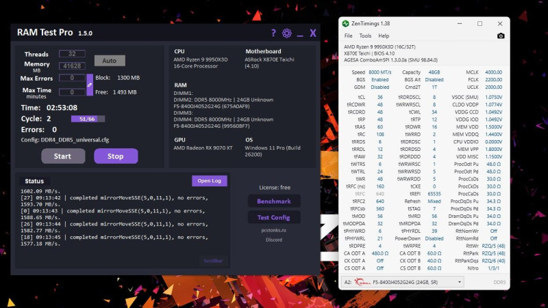 Hát, annyi h ramtest pro-t futtattam kb. 30 percig, addig ment, de ez nem jelent semmit.