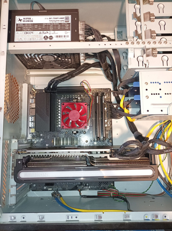 A lap elrendezése háát a középső nvme-t nem kellett volna a videó kártya alá rakni bár nem fő meg (samsung evo oem verzió nem kályha) de azért lesz vagy 50 fok játék alatt. A felső nvme-t még nem raktam be az 980pro oem arra van saját bordám, nem a gyárit fogom használni.