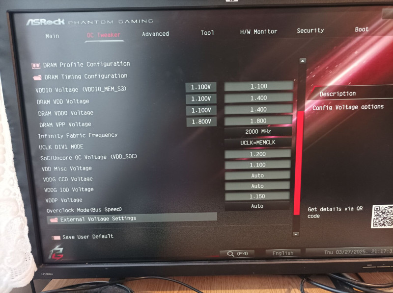 Ramot XMP szerint beállítottam de levettem 6400-ról 6000-re. Feszekből az alábbiak vannak beállítva: